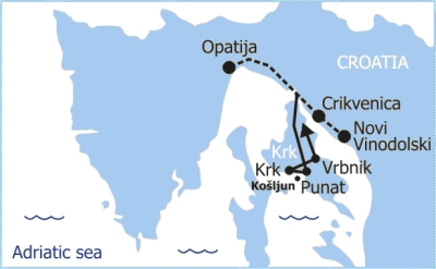 Nakon toga slijedi odlazak u grad Krk. Obilazak katedrale te razgled grada unutar zidina. Zanimljivo je lutati uskim gradskim ulicama koje kao da nekud vode, a zapravo sve izlaze na glavni gradski trg. Nakon razgleda Krka odlazimo u Vrbnik, mjestu poznatom po vinu Žlahtina, gdje ćemo u jednoj od konoba probati poznato istarsko vino i pršut. www.kosljun.hr